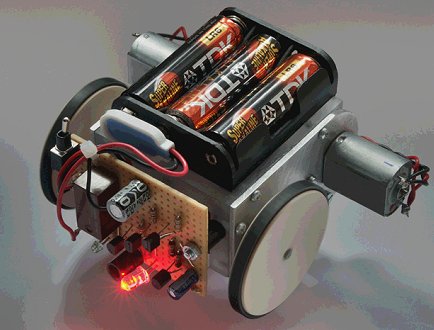 LED2 und das Relais Strom, der wiederum die Motoren umpolt. Motor 1 ändert