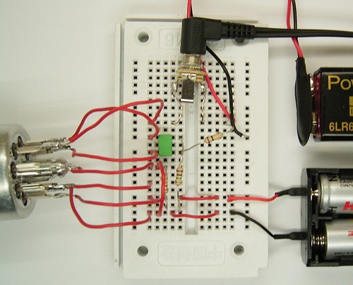 die Schaltung schon mit Ua = 6 V, wenn man den Gitterwiderstand auf 100