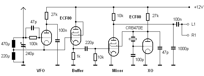 Mischer ist mit einem Keramik-Resonator auf 470 kHz stabilisiert. An der Anode