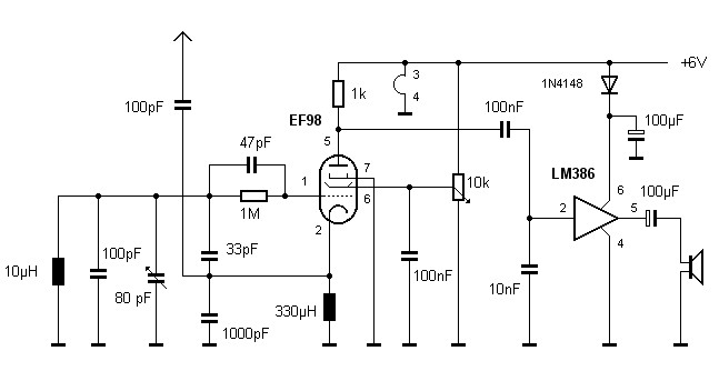 Einfache Radioschaltungen mit der EF98 arbeiten dank des NF-Verstärkers