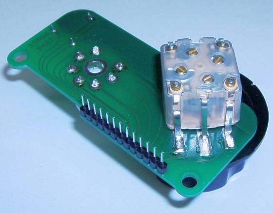 Drehko-Paket. 256 pF in Reihe zu 100 pF ergeben etwa 80 pF (Erklärung: http://de.wikipedia.org/wiki/Reihenschaltung#Kondensatoren). Es muss genauso aussehen wie auf dem Bild, da sich sonst die Platine nicht mehr auf das Steckbrett setzen lässt.