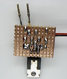 Für einen Widerstand R von 180 Ohm ergibt sich eine Ausgangsspannung von 2,2 V. Der Regler ist bei ausreichender Kühlung bis 1,5 A belastbar. Er enthält eine interne Strombegrenzung auf ca. 2,2 A und einen Übertemperaturschutz, der den Ausgangsstrom automatisch reduziert, sobald die Chiptemperatur zu hohe Werte annimmt.. An einem einfachen Stechernetzgerät mit z.B. 6V/300mA ergibt sich eine Strombegrenzung bei ca. 0,5 A. Da der Spitzen-Ladestrom schnell abklingt, kommt man im Normalfall ohne Kühlkörper aus. Nur falls die Schaltung eingesetzt werden soll, um mehrere Supercaps in schneller Folge zu laden, sollte in ausreichend großer Kühlkörper verwendet werden. |