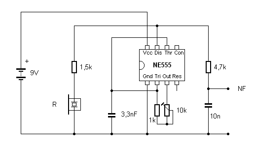 Bereich heruntermischt. Hier wird ein Timer 555 als Mischer und einstellbarer