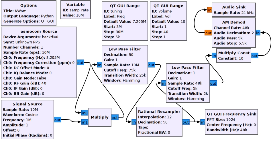 Außerdem mussten die Frequenzbereiche angepasst werden. Der HackRF One