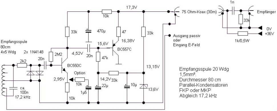 verdrahtet. Ein rauscharmer BC550 C (NPN) als Vorverstärker und ein