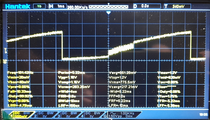 Spule springt die Spannung von ca. 110 mV auf ca. 420 mV ohne