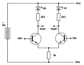 differential amplifier. The bases form the input. With open bases the