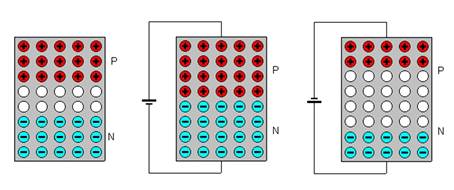 Ladungsträger werden zu den äußeren Anschlüssen hingezogen, sodass sich die