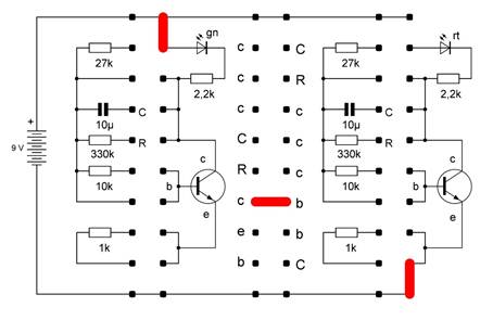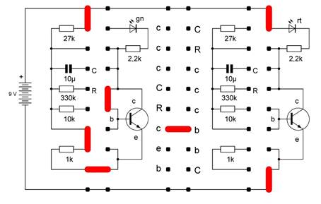 großen Unterschied. Bei dieser Schaltung ist das anders. Die rote LED ist bei