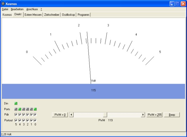Man könnte aber ein eigenes Mikrocontroller-Modul auf einer kleinen Platine aufbauen, die zu dem Kosmos-Mikrocontroller kompatibel ist. Ich würde den ATMEGA8 empfehlen, weil er über intere AD-Kanäle verfügt. Die Ports kann dann jeder selbst den äußeren Anschlüssen zuordnen, wobei wie beim Original jeweils ein 1-k-Widerstand in Reihe liegen soll. Auf der Platine sollte ein 5-V-Spannungsregler und ein 6-poliger Pfostenstecker für die Programmierung verwendet werden. Dann kann man z.B. mit Bascom-AVR Programme entwickeln und auf dem Baukasten ausprobieren.