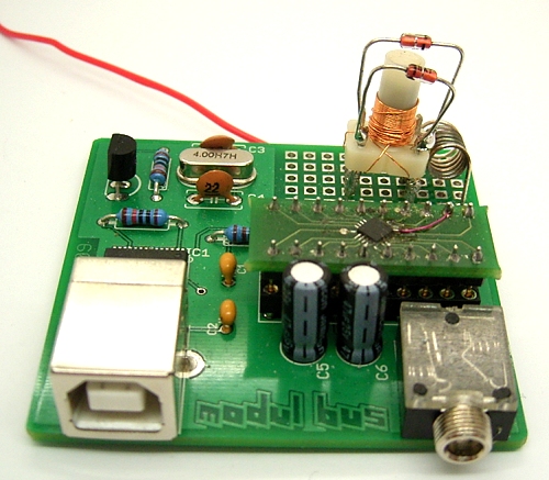 Das Empfangsmodul wurde hier mit einem Schwingkreis betrieben, der eigentlich nur für den unteren Kurzwellenbereich ausgelegt ist. Bei starker Antennenkopplung kommt aber auch noch Mittelwelle ausreichend stark mit durch. Allerdings gibt es dann Probleme mit starken Störimpulsen, die den Chip zum Absturz bringen können. Dagegen helfen zwei antiparallel geschaltete Schottky-Dioden BAT43 am AM-Eingang. Diese Maßnahme empfiehlt auch das Datenblatt. Für echte Breitbandmessungen könnte man statt des Schwingkreises auch einen 50-Ohm-Widerstand verwenden.