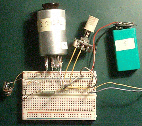vom Modul-Bus mit der Röhre 2SH27L auf einem Steckbrett. Das