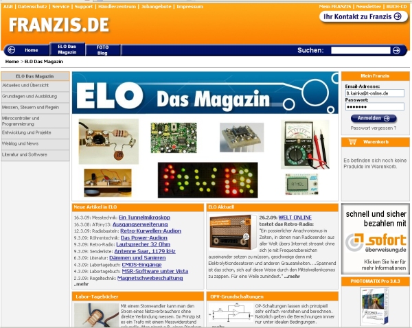 Unter den Haupt-Links stehen auch meine beiden anderen Seiten: ELEXS und ELO.