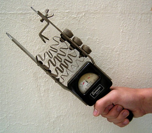 Gottfried Elmenreich schreibt: Das alte Messgerät ganz unten ist ein Akku-Tester. Es wird in der KFZ-Elektrik zum Prüfen der Batterie verwendet.Der Fast- Kurzschluss über die kleinohmigen Widerstände zeigt an ob die Zellen des Akkus noch gesund sind.
