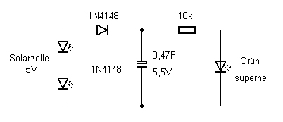 Kondensator bei vollem Sonnenlicht bis etwa 4,5 V geladen wird. Der
