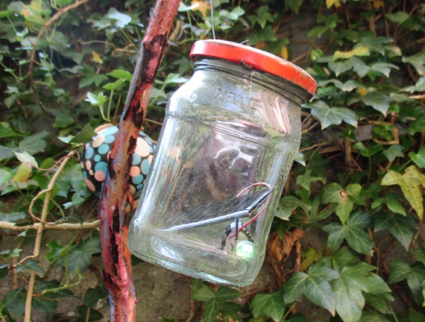 einfach in einem Marmeladenglas als Lampenglas und wetterfeste