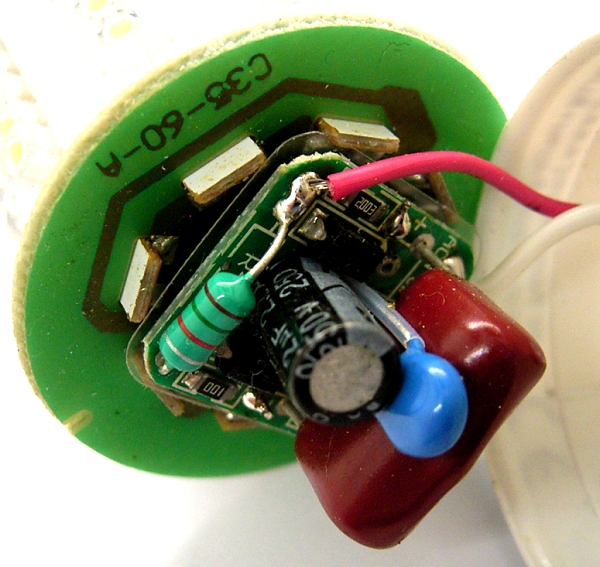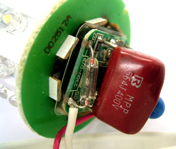 Siebelko 2,2 µF / 250 V. Insgesamt 60 weiße LEDs liegen in