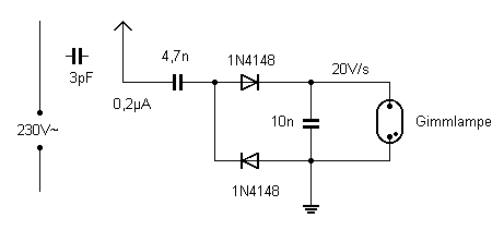 angeschlossene Glimmlampe zündet. Sie entlädt den Speicherkondensator teilweise
