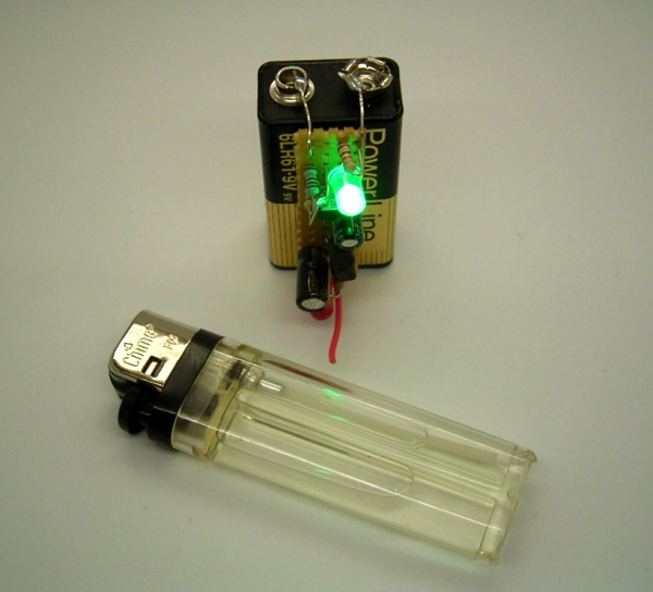Zeitkonstante von zehn Sekunden, praktisch leuchtet die LED aber etwa