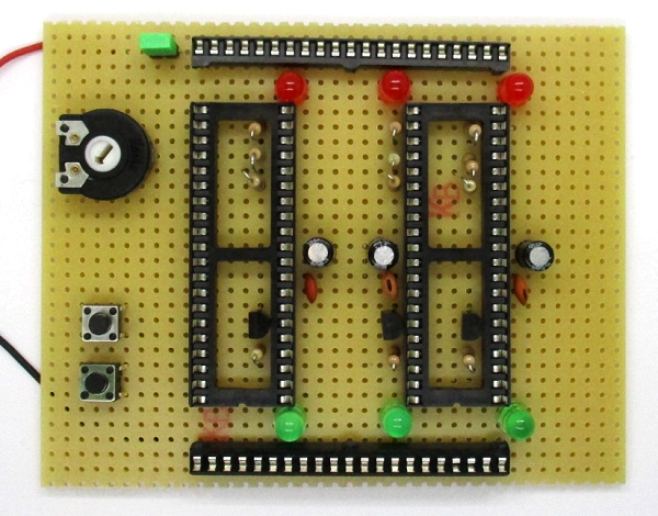 sind mit einfachen IC-Fassungen mit 40 Anschlüssen realisiert, weil sie