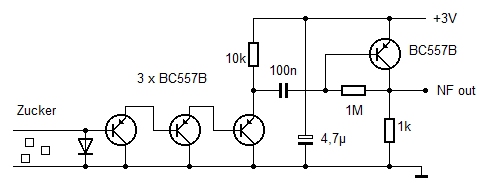 folgende Verstärkerstufe in Emitterschaltung hebt die Signale so weit