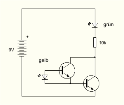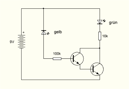Darlington-Stufe und eine weitere LED. Der Versuch entspricht einer