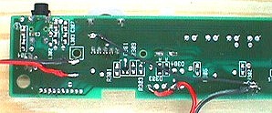 Die Platine war über ein Flachbandkabel mit der Hauptplatine verbunden. Man konnte bereits gut sehen, wo Masse und Betriebsspannung (+5V) verbunden sind. Auch der Rest war nicht sehr schwierig. Also Eingänge anschließen (Re und Li zusammen für Mono-Ansteuerung), Kabel für die Betriebsspannung ... fertig.