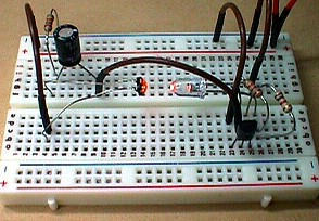 nachgebaut. Widerstände jeweils 2 k, U=3 V, Elko 100 µF, weiße
