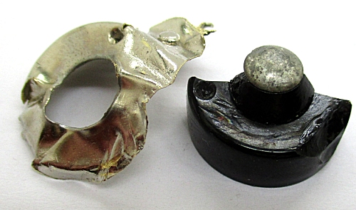 Eine durchgebrannte Glühlampe lässt sich meist leicht aus dem Sockel entfernen, weil der Kitt durch die lange Wärmeeinwirkung morsch geworden ist. Schwieriger ist es, den Isolator aus dem Gewinde zu befreien. Es funktioniert wie beim Dosenöffnen. Man kann einen Streifen Blech rundherum abreißen. Leider ging es nicht ohne Blutvergießen. Das Blech ist sehr scharf, und der Isolator hat auch scharfe Kanten. Arbeitshandschuhe wären nicht schlecht gewesen.