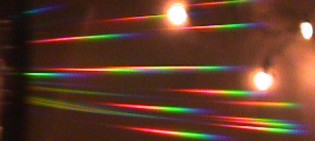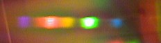 Das Spektrum eines Weihnachtsbaums zeigt für jede der kleinen Glühlampen ein durchgehendes Band von Rot bis Blau. Das Blau einer Glühlampe ist sehr schwach, violett ist fast gar nicht mehr zu erkennen.