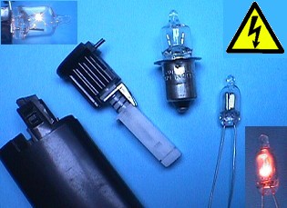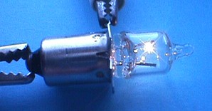 Ein Versuch mit einer durchgebrannten Taschenlampen-Halogenbirne: An der Unterbrechung des Glühfadens entsteht ein greller weißblauer Lichtbogen. Man kann es auch mit einer durchgebrannten 230-V-Lampe versuchen. Der hängende Glühfaden wird durch vorsichtiges Drehen der Lampe so justiert, dass sich eine enge Lücke zum anderen Ende ergibt. Man sieht dann einen blauen Miniblitz.