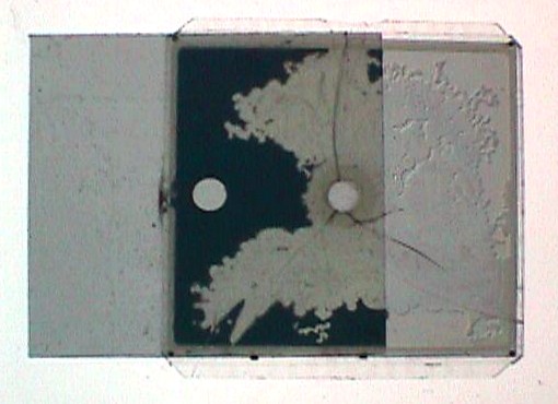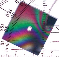 Wenn ein durchsichtiger Stoff die Polarisationsebene des Lichtes verdreht, kommt doch wieder Licht durch. Das passiert z.B. bei der optischen Doppelbrechung. Der Versuch ist ganz einfach. Man legt ein Geodreieck oder etwas anderes aus Plexiglas zwischen die beiden gekreuzten Polarisationsfolien. Dann sieht man schöne bunte Farben, die Auskunft über innere Spannungen des Materials geben, weil die Schwingungsebene des Lichts gedreht wird. Das selbe machen die Flüssigkristalle im LCD. Normalerweise wird das Licht gedreht, wenn man aber eine Wechselspannung anlegt, dann nicht mehr. So wird es hell oder dunkel, je nachdem wie die Filter angeordnet waren.