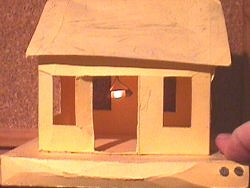 Aber auch mit einer Glühlampe kann eine Batterie lange halten. Das kleine Papphaus ist bereits älter als 10 Jahre und wurde von zwei Kindern und ihren Freunden zum Spielen benutzt, was mehrere Renovierungen erforderlich machte. Nur die Batterie hat bis jetzt durchgehalten. Das liegt an zwei Dingen: Die Batterie ist angelötet und im Fundament fest eingeklebt. Und es gibt einen Mikroschalter, auf den man drücken muss. Man kann also nie versehentlich das Licht anlassen. Am besten eignen sich Alkali-Batterien, weil sie fast keine Selbstentladung kennen und nie auslaufen.