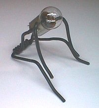 Lithium-Zellen mit 3 Volt können auch dann noch für LEDs verwendet werden, wenn sie z.B. für einen Taschenrechner schon zu schlapp sind. Eine Fassung kann man aus Draht selbst herstellen.