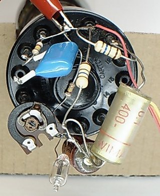 Wer eine alte Oszillographenröhre bekommt, möchte sie vielleicht wenigstens einmal ihrem Zweck entsprechend einsetzen. Dazu braucht man eigentlich nur die richtigen Spannungen an den richtigen Anschlüssen. Wo die einzelnen Beschleunigungselektroden und die Ablenkplatten am Sockel zu finden sind, kann man leicht durch einen Blick ins Innere klären. Der Versuch ist also auch dann möglich, wenn wie in diesem Fall keine Typenbezeichnung mehr zu erkennen ist.