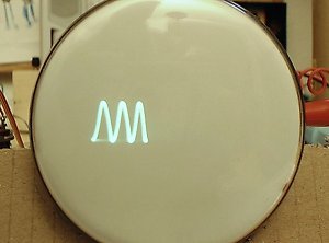 Der Ablenkoszillator zeigt seine Tätigkeit durch ein schwaches Flackern der Glimmlampe. Immer wenn der parallele Kondensator sich bis auf die Zündspannung aufgeladen hat, wird er mit einem kurzen Stromstoß entladen. Man erhält so ganz einfach die erforderliche Sägezahnspannung für die X-Ablenkung. Die Betriebsspannung wurde übrigens vom Spannungswandler für das Magische Auge entliehen. 300 V ist nicht viel, sodass man keine große Helligkeit erwarten kann. Ein paar Volt mehr an der Anode wirken hier Wunder, denn original wurden ca. 2 kV verwendet. Der Stahl lässt sich jedoch schon bei einer Betriebsspannung von nur 300 V gut fokussieren.