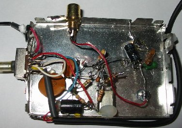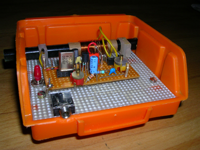 Der 4 MHz-Quarz wie alle anderen Bauteile stammten aus einem alten Videorecorder. Der Empfänger wird wahlweise von der Soundkarte oder von Batterie mit Strom versorgt (Schalter). Die Deutsche Welle wurde mit S/N von 15dB empfangen.