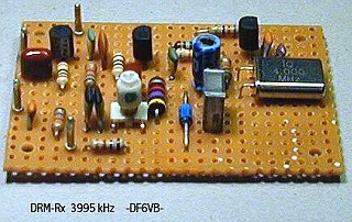 Digitaler Rundfunk auf Kurzwelle, wer möchte da nicht mal mithören! Hier kommt ein ganz einfacher Empfänger mit Material aus der Bastelkiste. Der Direktmischer arbeitet quarzstabil ohne kniffelige Abstimmung und empfängt den Sender der Deutschen Welle im 75-m-Band auf 3995 kHz, z.Zt. immer Abends ab 20 Uhr bis 21. Uhr Sommerzeit.