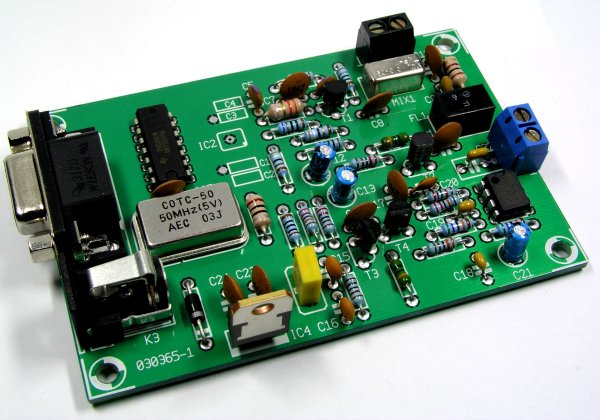Frequenzeinstellung über den USB: Viele Laptops haben keine RS232 mehr, sondern nur noch eine USB-Schnittstelle. Die bisherige Software lief nicht mit einem USB/RS232-Adapter. Der Grund liegt im Timing, die Schnittstellenleitungen können über den Adapter nicht schnell genug gesteuert werden. Deshalb kommt hier ein verändertes Programm, das langsamer auf die virtuelle COM-Schnittstelle zugreift. Der Abstimmvorgang dauert jetzt ca. eine halbe Sekunde. (siehe auch USB mit DREAM)