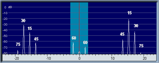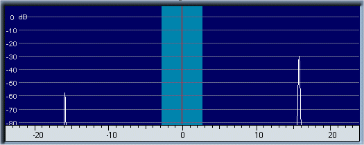 Schließt man nun dieses Stereo-Signal an einen Line-Eingang der Soundkarte an, ist zu erkennen, ob die Soundkarte ein steilflankiges Tiefpassfilter besitzt und ob sie ein echtes Stereo-Signal verarbeitet. Der Test verwendet das SDRadio. Eine gute Soundkarte zeigt nur zwei Signale, das Wunschsignal bei + 15 kHz und das abgeschwächte Spiegelsignal bei -15 kHz.