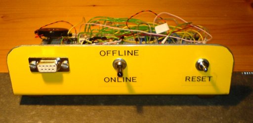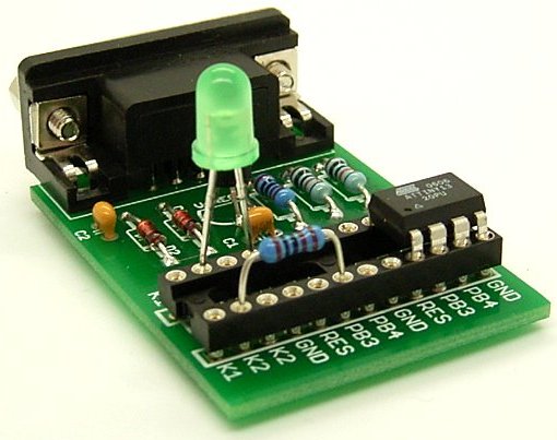 Es wurde ein Modul selbst gebaut, mit dem Vorteil, auch PB0 bis PB2 zu nutzen. Als Multiplexer dient ein einfacher 4xUM-Schalter. Hier werden PB0,PB1,PB2 und VCC umgeschaltet zwischen RS232 und Steckboard/Batterie