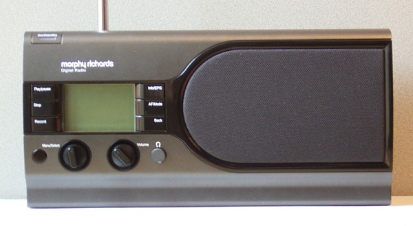 Das Morphy Richards Digital Radio ist das erste eigenständige Radio für DAB und DRM. Der PC bleibt aus, endlich entfällt das störende Geräusch der Festplatte! Morphy Richards ist übrigens bekannt für Küchengeräte von der Kaffeemaschine bis zum Bügeleisen, aber auch einige (Küchen?)-Radios. Möglicherweise ist der Schwerpunkt des Unternehmens für das Design des Digital Radio verantwortlich, das von der Seite entfernt an einen Toaster erinnert. Aber insgesamt ist das Äußere gelungen. Dieses Radio stelle ich mir gern ins Wohnzimmer.