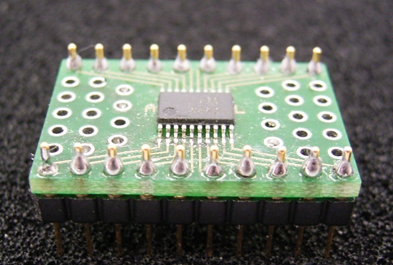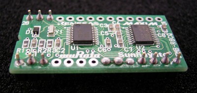 Inzwischen wird das Thema R8C auch bei AK MODUL-BUS ernst genommen. Im Online-Shop erhält man bereits Mikrocontroller vom Typ R8C/15, der auch im japanischen Starterkit verwendet wurde. In Elexs gibt es einen Startartikel zum Einsatz des Controllers. Das Bild zeigt das IC auf einer SMD-Adapterplatine.
