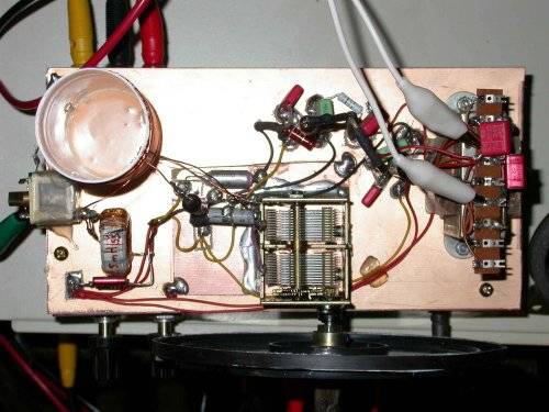 Nebenbei habe ich mir mit Batterieröhren auch einen 0V2 gebaut (1SH24B in Audion und Endstufe, 1SH18B in Treiberstufe). Eine solche Empfindlichkeit und Selektivität hätte ich nie erwartet, bei dem geringen Aufwand! An einer Aussenantenne habe ich auf MW mehr als 40 Stationen gezählt, daneben ist noch das 160m-Amateurband zu empfangen, natürlich auch SSB und CW ....ein mittels Potiachse, Schwunggewicht und Resten einer CD-Vorratspackung mit 3 alten Zeitschriften-CDs (zur Versteifung) hergestellte Untersetzung macht's möglich...60mal muss man den Abstimmknopf für die 180Grad des Drehkos drehen, also insgesamt eine Untersetzung von 1:120 ! Der Aufbau ist aber noch nach der herkömmlichen Methode, soll auch nur zeigen, dass Sie nicht alleine sind ;-)