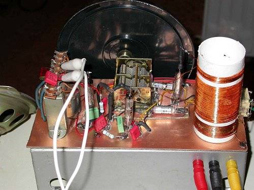 Die 6N28B ist eine Doppeltriode mit 6,3 V Heizspannung und etwa 220 mA Heizstrom, empfohlener Anodenspannung von 50 V und ca. 1 W Anodenverlustleistung pro System. Versuche mit einer Betriebsspannung von 36 V brachten mehr Lautstärke als mit 18 V. Die Schwingkreisspule für Kurzwelle wird zusätzlich mit einem Ferritstab abgestimmt, was den Empfangsbereich stark erweitert.