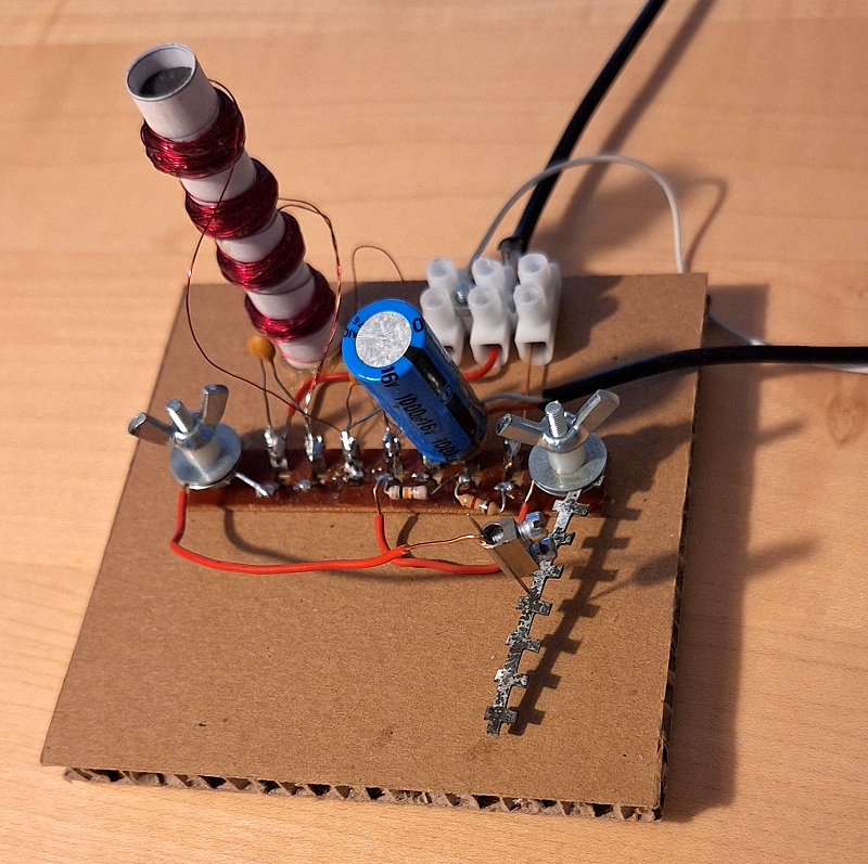 einer langen Zweidrahtleitung und über einen kleinen Trenntrafo ca. 20