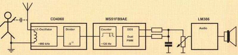 arbeitet bei ca. 980 kHz. Das Signal wird dann bis auf ca. 120 Hz