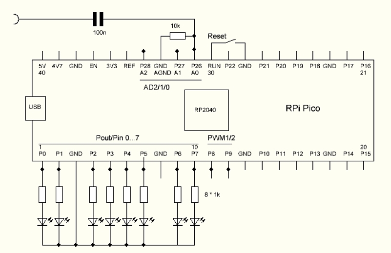dann direkt an den Port mit acht LEDs ausgegeben. Wenn dann der höchste