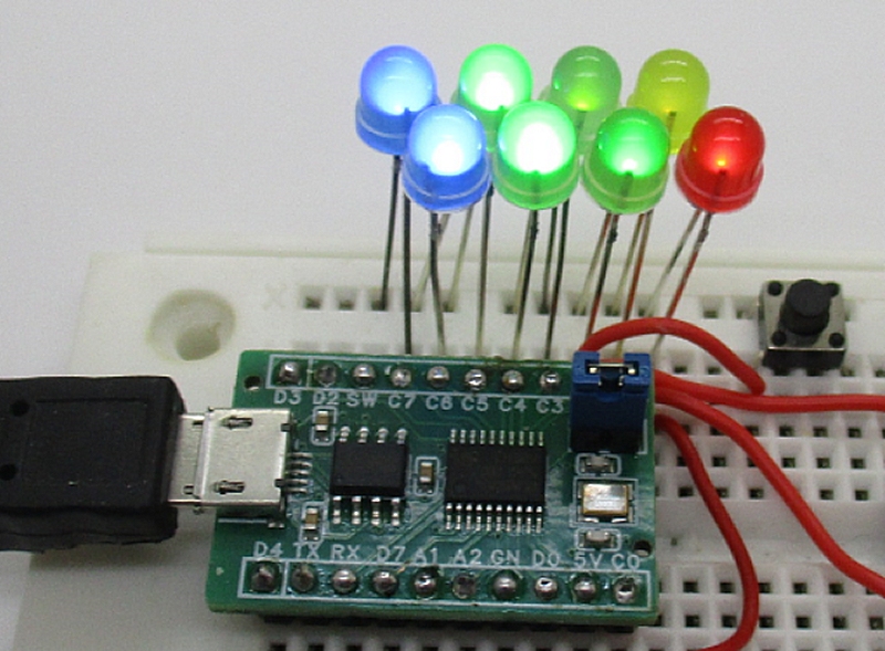 Hauptprogramm nach jedem Durchlauf aller acht LEDs um eins verschoben,