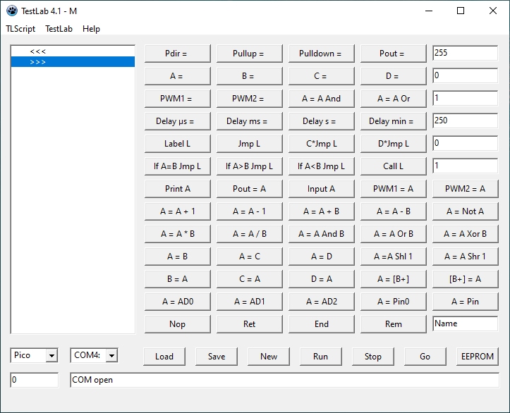 geschieht mit der Programm-IDE TestLab, welches in Pascal programmiert